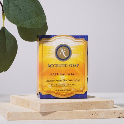 สบู่แอกเซนต์51ทองคำพรีเมี่ยม พลัส (ACCENT51 GOLDEN SOAP PLUS) ขายมาแล้วกว่า 60,000 ก้อน ปรับสูตรให้พรีเมี่ยมกว่าเดิม ด้วยกลิ่นที่คิดค้นขึ้นใหม่ ปรุงจากนักปรุงน้ำหอมโดยเฉพาะ กลิ่นหอมน่าจดจำ เป็นเอกลักษณ์ สบู่คุณภาพดี ใช้แล้วผิวจะไม่แห้ง ไม่แสบ สบู่คุณภาพสูง เนื้อสบู่ไม่แตก สบู่มีความปลอดภัย ไม่ใส่ SLS ไม่มีสารฟอกขาว ผิวดีขึ้นอย่างเป็นธรรมชาติ ใช้สีเกรดพรีเมี่ยมสำหรับทำเครื่องสำอางโดยเฉพาะ อ่อนโยนต่อทุกสภาพผิว จากสารจากธรรมชาติ (NATURAL SOAP) ปลอดภัย ให้ผลดี ควบคุมการผลิตโดยเภสัชกรนักวิทยาศาสตร์เครื่องสำอาง เลขที่ใบรับแจ้ง 73-1-6200048570